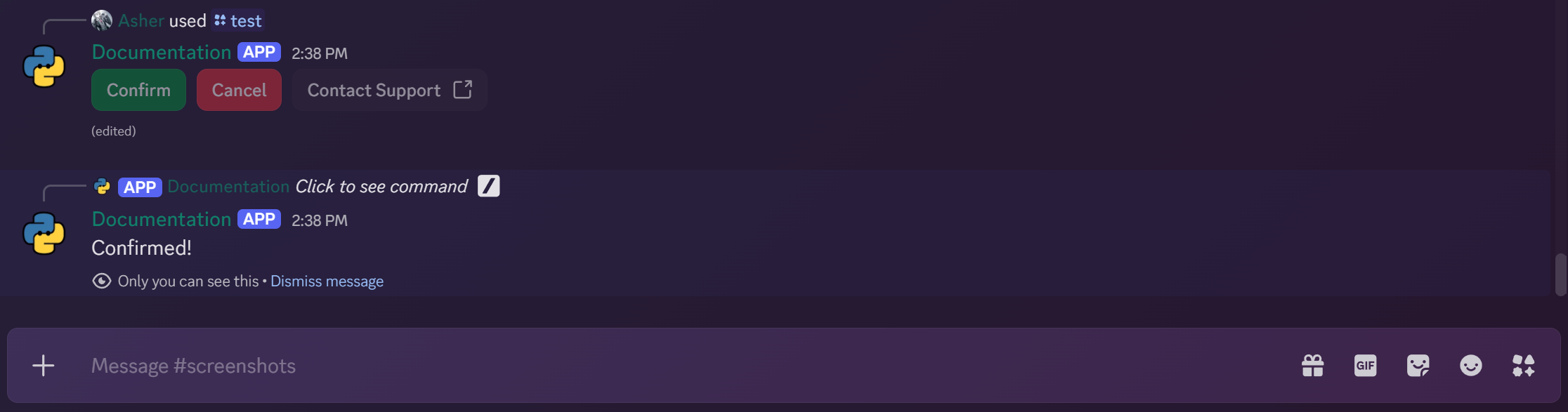 ui.TextDisplayto show text content instead of thecontentparameter. - Disabling interactive components like buttons and select menus is similar to before, but we will be using the