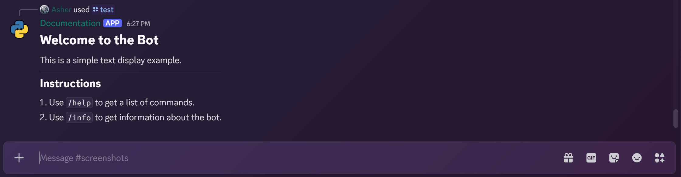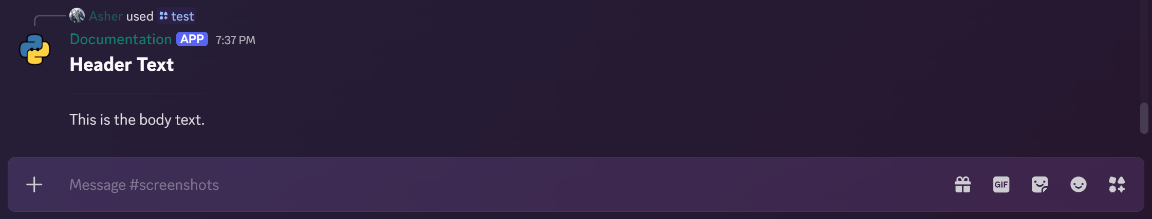 content,stickers,pollsandembedsfields cannot be used in conjunction with Components V2. Instead, useTextDisplayandContaineras replacements. - Attachments aren't previewed or shown by default and must be explicitly exposed using